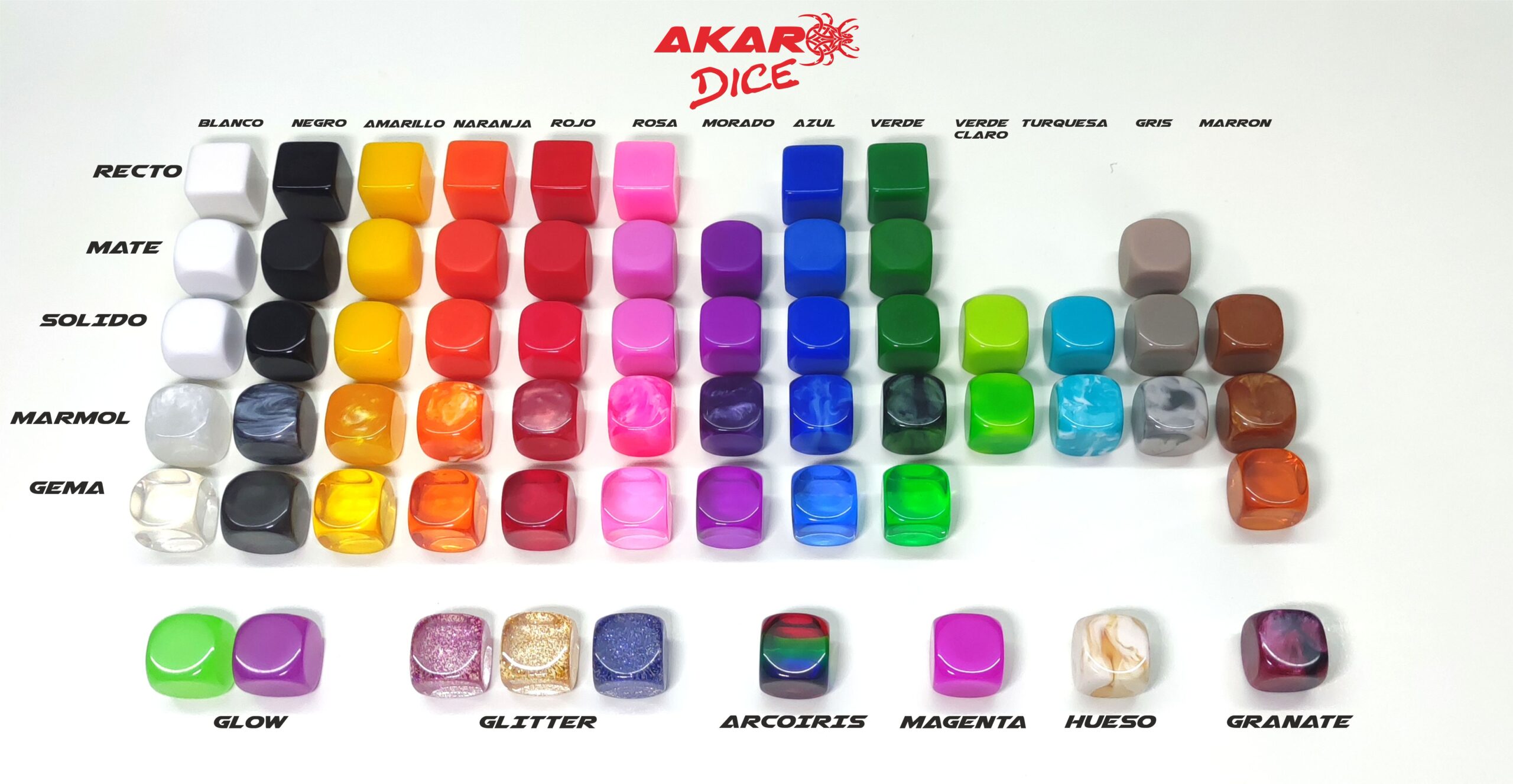Todos nuestros dados están fabricados con amor al juego y al azar, preparados para ser personalizados y mejorar tus mesas de juego. Cualquier duda sobre colores, tamaños y modelos, no lo dudes y ponte en contacto con nosotros.