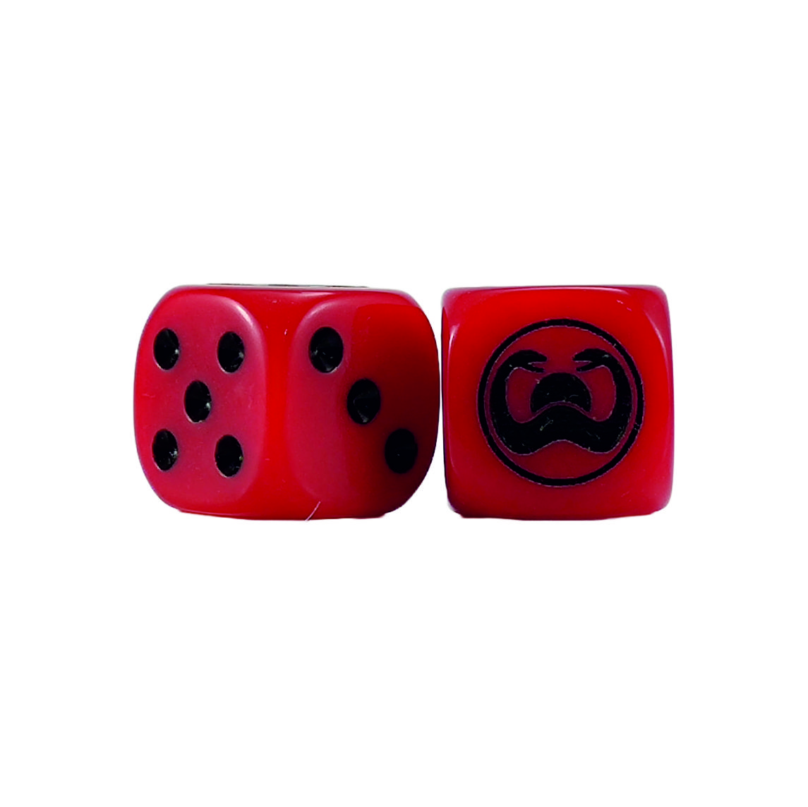 Bárbaro 1 dado d6 con la cara del seis personalizada con el símbolo de dos serpientes enfrentadas frente a un sol naciente. Este producto se encuentra disponible en todos los colores de nuestro catálogo.