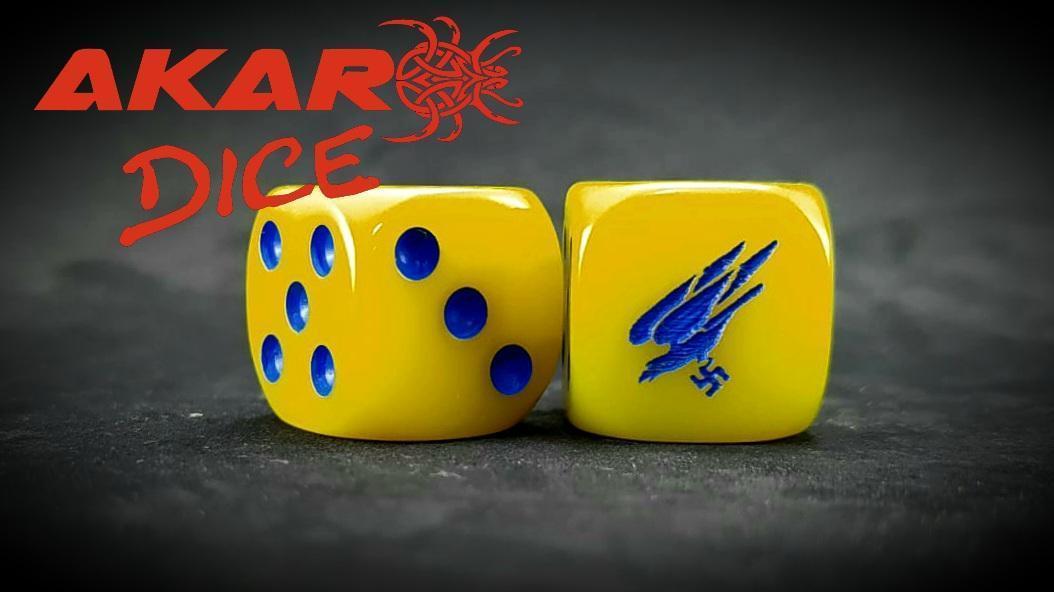 Dado Alemán IIWW – Fallschirmjäger 1 dado d6 con la cara del seis personalizada con el emblema de la Fallschirmjäger. Este producto está disponible en todos los colores de nuestro catálogo.