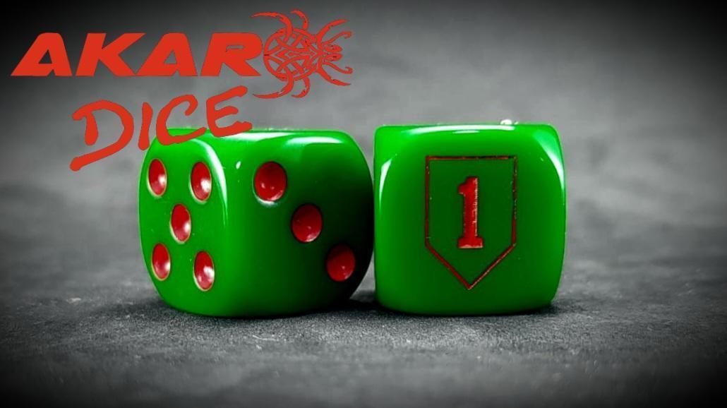 Dado USA IIWW- Div.1ª Infantería 1 dado d6 con la cara del seis personalizada con el emblema de la 1ª División de Infantería USA Este producto está disponible en todos los colores de nuestro catálogo.