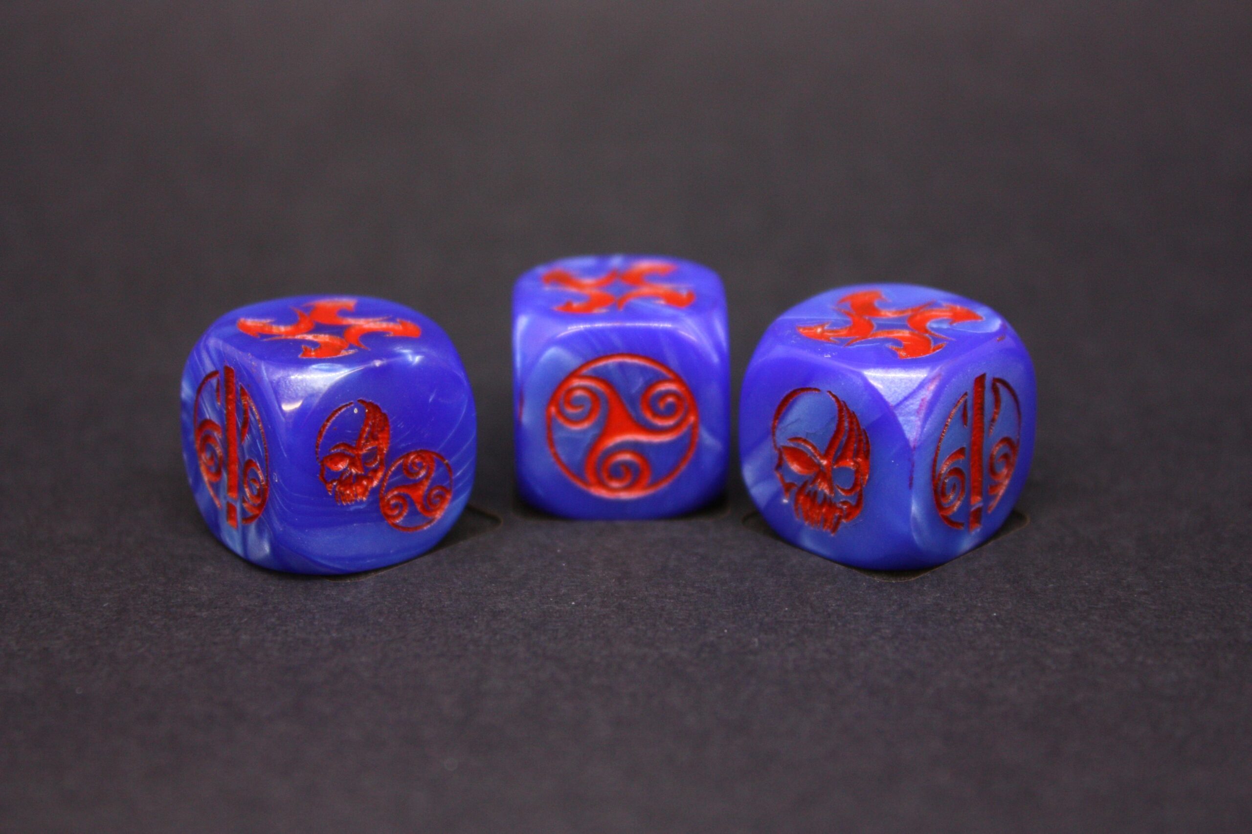 Set de 3 dados d6 personalizados con sรญmbolos celtas, compatibles con los dados block de Fantasy Football.