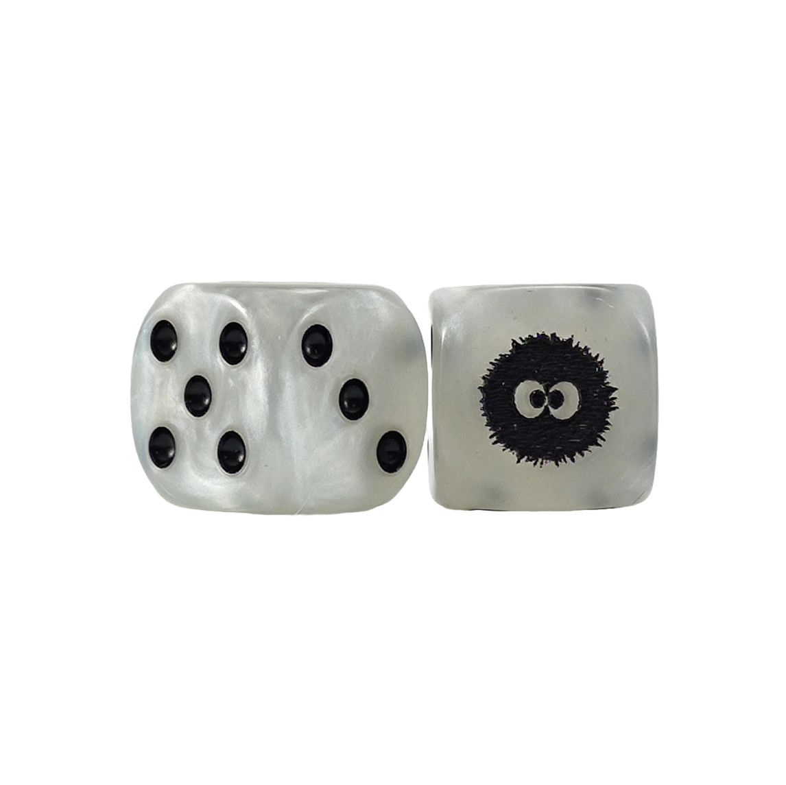 Dado d6 con la cara del 6 personalizada con la imagen de Susuwatari duendes del polvo รste modelo estรก disponible en todos los colores de nuestro catรกlogo.