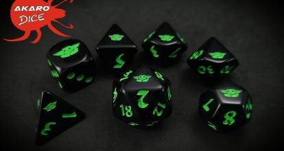 Set de Rol personalizado (20,70โฌ unidad) Set de rol completo, personalizado en la cara mayor de cada dado. Incluye: 1 d4 1 d6 1 d8 1 d10 1 d10 porcentual 1 d12 1 d20 Los sets estรกn disponibles en negro sรณlido o en blanco sรณlido. Se pueden personalizar con cualquiera de los diseรฑos disponibles en…